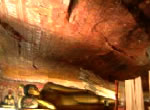 寺院は山上の洞窟の中に造られたものであり、第1~5窟まである。最大のものは第2。写真等で見た黄金に輝く壁一面の壁画を期待して中に入ると、薄暗い。しかし一面に描かれた仏教画は一見の価値がある。シンハラ 人とタミル人の闘いを描いたものもある。